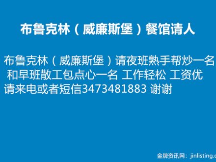 布鲁克林餐馆请人