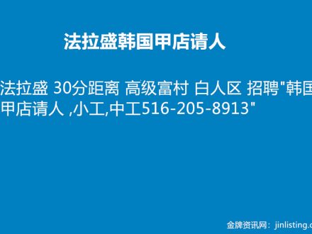 法拉盛 韩国甲店请人 516-205-8913