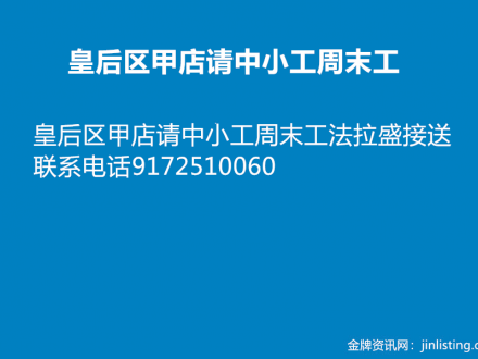 皇后区甲店请中小工周末工 917-251-0060