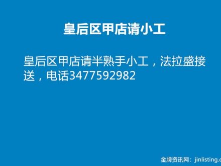 皇后区甲店请小工 347-759-2982