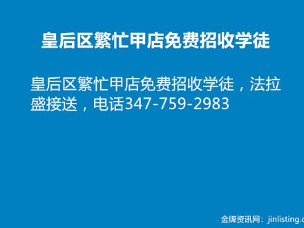 皇后区繁忙甲店免费招收学徒 347-759-2983
