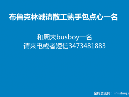 布鲁克林诚请散工熟手包点心一名,和周末busboy一名 3473481883