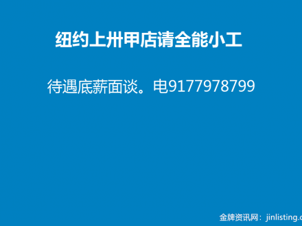 “皇后区甲店找学徒。小工。半熟手也可以 电话9292789198”