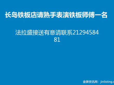 长岛铁板店请熟手表演铁板师傅一名 2129458481