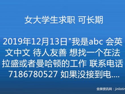 女大学生求职 可长期 7186780527