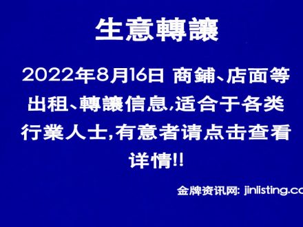 8月16日 商舖、店面等出租、轉讓