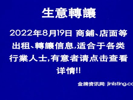 8月19日 商舖、店面等出租、轉讓