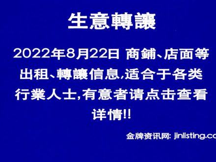 8月22日 商舖、店面等出租、轉讓