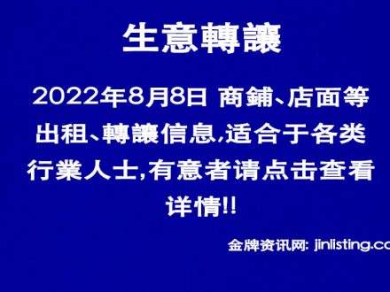 8月8日商舖、店面等出租、轉讓