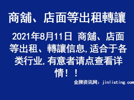 8月11日 商舖、店面等出租、轉讓