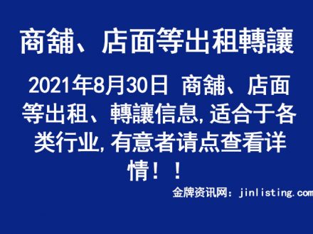 8月30日 商舖、店面等出租、轉讓