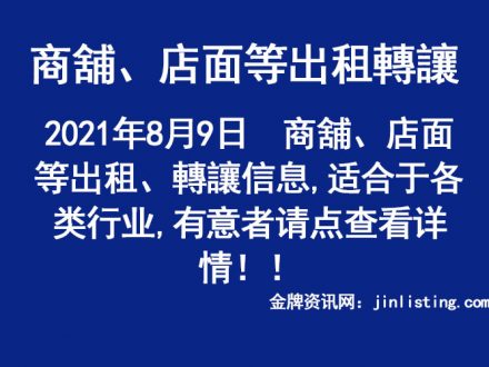 8月9日 商舖、店面等出租、轉讓