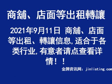 9月11日 商舖、店面等出租、轉讓