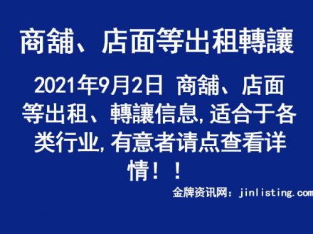 9月2日 商舖、店面等出租、轉讓