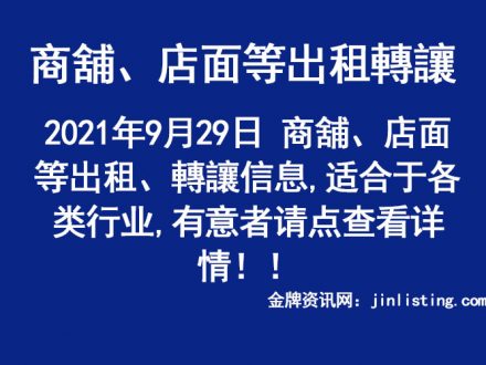 9月29日 商舖、店面等出租、轉讓