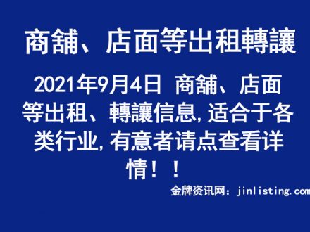 9月4日 商舖、店面等出租、轉讓