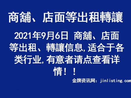 9月6日 商舖、店面等出租、轉讓