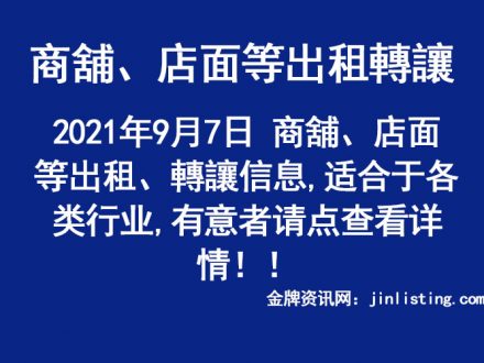 9月7日 商舖、店面等出租、轉讓