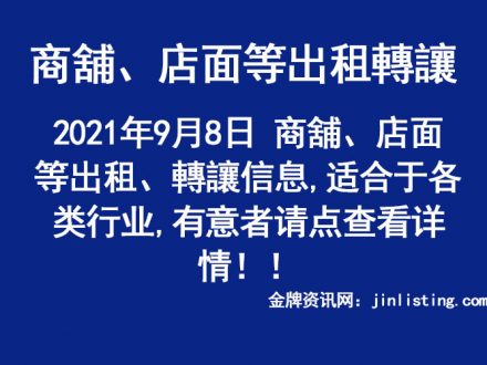 9月8日 商舖、店面等出租、轉讓