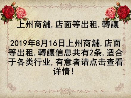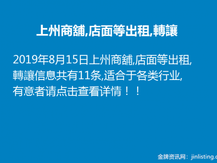 上州商舖,店面等出租,轉讓