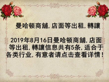 曼哈顿商舖,店面等出租,轉讓