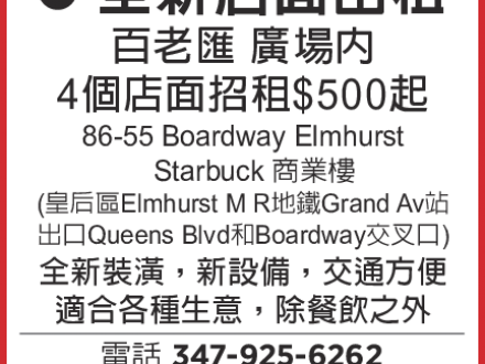 台灣商會李金標會長 全新店面出租 347-925-6262 917-731-1165
