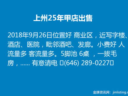 上州25年甲店出售 (646) 289-0227