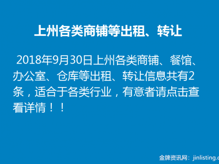 上州各类商铺、餐馆、办公室、仓库等出租、转让