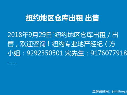 纽约地区仓库出租/出售 9292350501