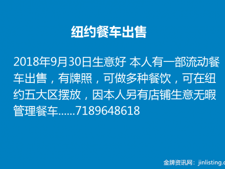 纽约餐车出售 7189648618