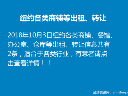 纽约各类商铺、餐馆、办公室、仓库等出租、转让