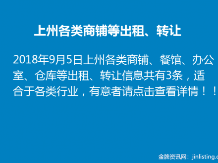 上州各类商铺、餐馆、办公室、仓库等出租、转让