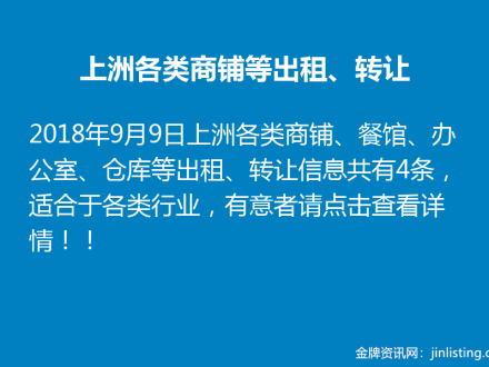 上洲各类商铺、餐馆、办公室、仓库等出租、转让