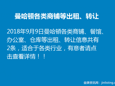 曼哈顿各类商铺、餐馆、办公室、仓库等出租、转让