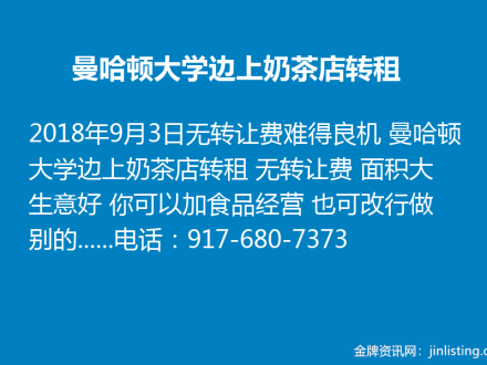 曼哈顿大学边上奶茶店转租 917-680-7373