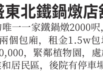 法拉盛知名東北鐵鍋燉店舖轉讓