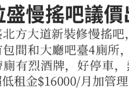 法拉盛北方大道全新裝修慢搖吧議價出售