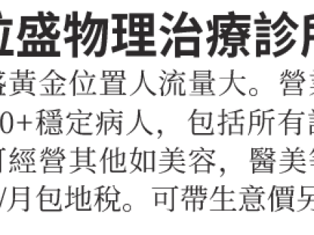 法拉盛物理治療診所轉讓(可帶生意,價格另議)