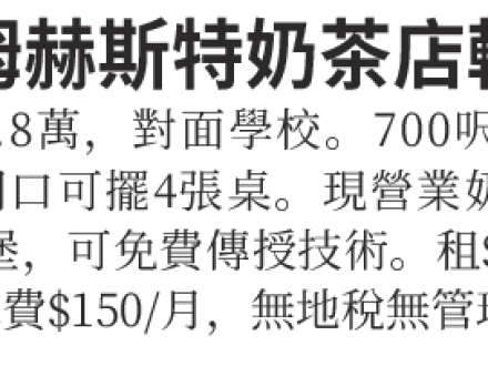 艾姆赫斯特Elmhurst奶茶店生意轉讓!售價9.8萬!