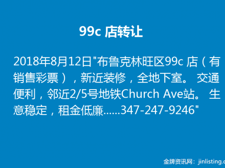 布魯克林繁忙黃金轉角99店面轉讓! 718-213-8169