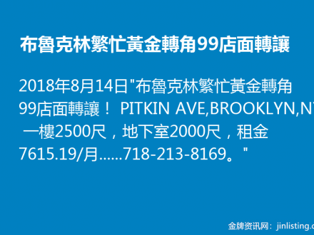 布魯克林各类商铺、餐馆、办公室、仓库等出租、转让
