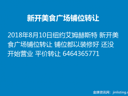 纽约艾姆赫斯特 新开美食广场铺位转让 6464365771