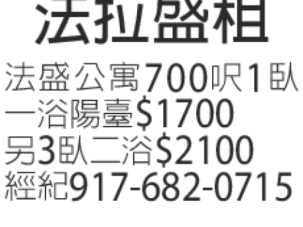 法拉盛房屋出租 917-682-0715