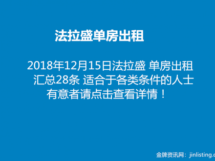 法拉盛单房出租 汇总28条