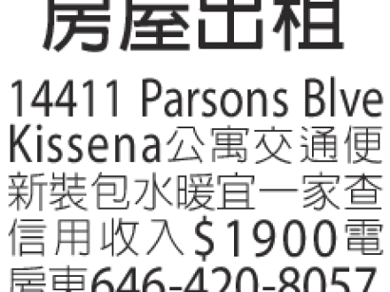房屋出租 646-420-8057