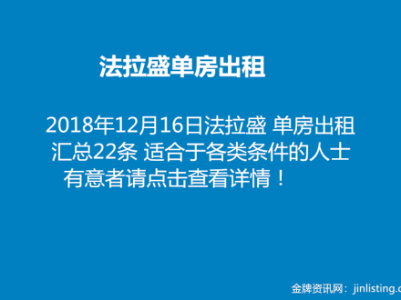 法拉盛单房出租 汇总22条