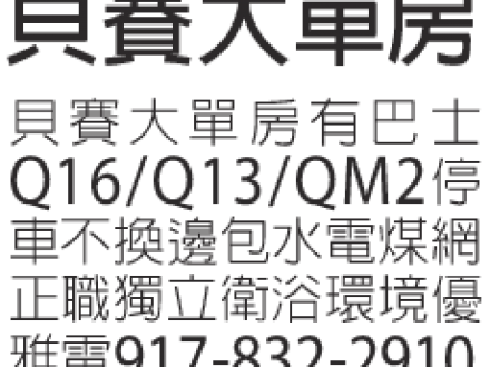 貝賽 大單房租 347-886-1103