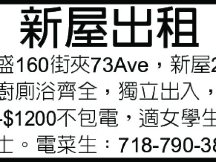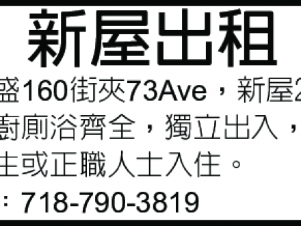 法拉盛 新屋出租 718-790-3819
