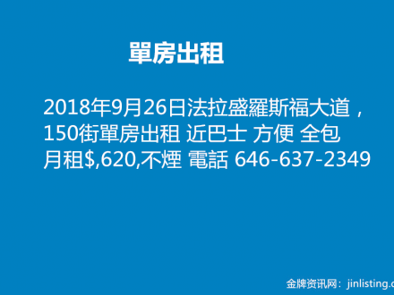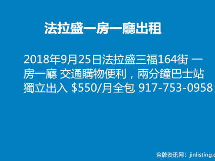布朗士 康鬥 1睡房 16萬8千 917-623-1729