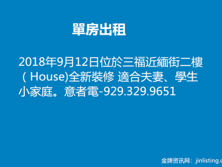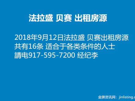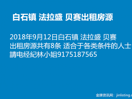 白石镇,法拉盛,贝赛出租房源 請电9175187565